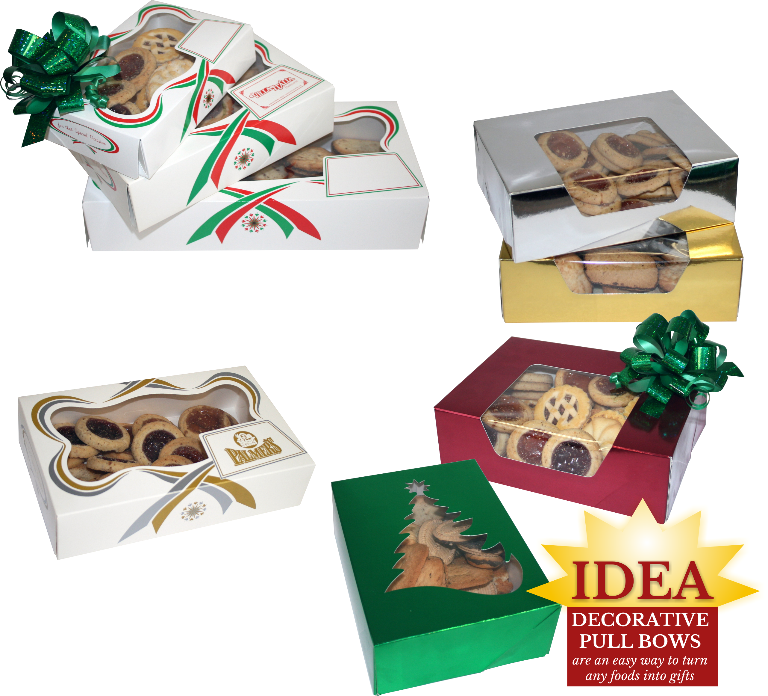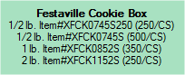 Ideal for fancy cookies, petit fours and candy. Polylined inside for stain resistance and freshness retention Stock designs are available for immediate shipment. 1 lb. size is imprintable. Available in 1/2 lb., 1 lb. & 2 lb. sizes. *Imprintable cookie boxes available in small quantities if ordered by Sept 1st